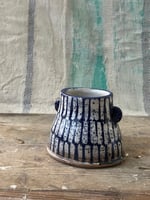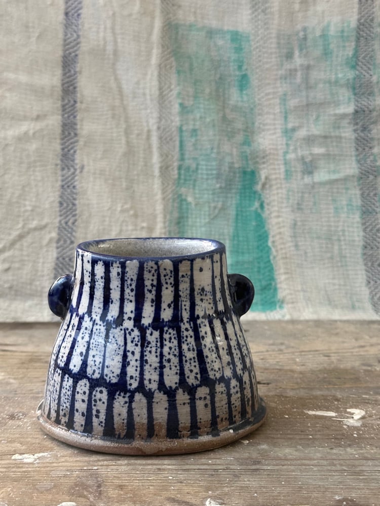 Lugged vase with cobalt wax resist decoration