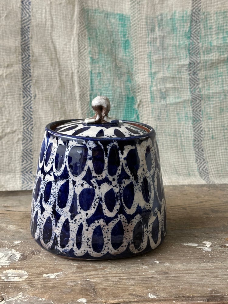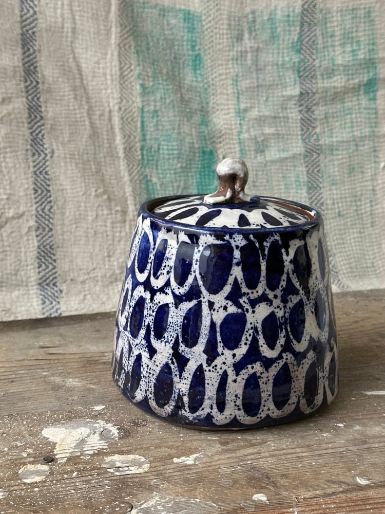 Tea caddy blue circles